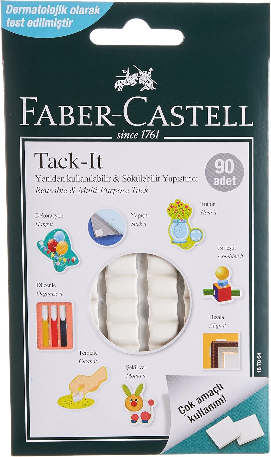 Tack-it Beyaz, 50 gr, 90 Parça, Yeniden Kullanılabilir Hamur Yapıştırıcı, Sökülebilir ve İz Bırakmaz