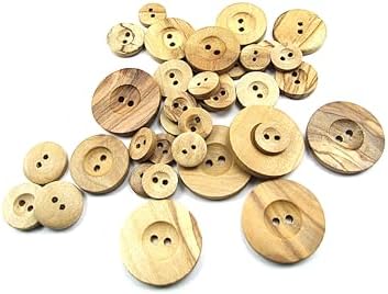 Tahta Düğme,Ahşap, 2 Delik Yazı Model, Doğal Ahşap, Zeytin Ağacı,100 Adet 25mm-40L Düğme