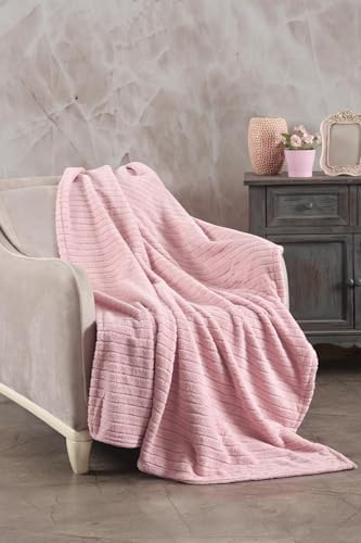 Tekstil Comfy | Çizgili Tv Battaniyesi 110×180 Cm Pembe