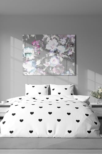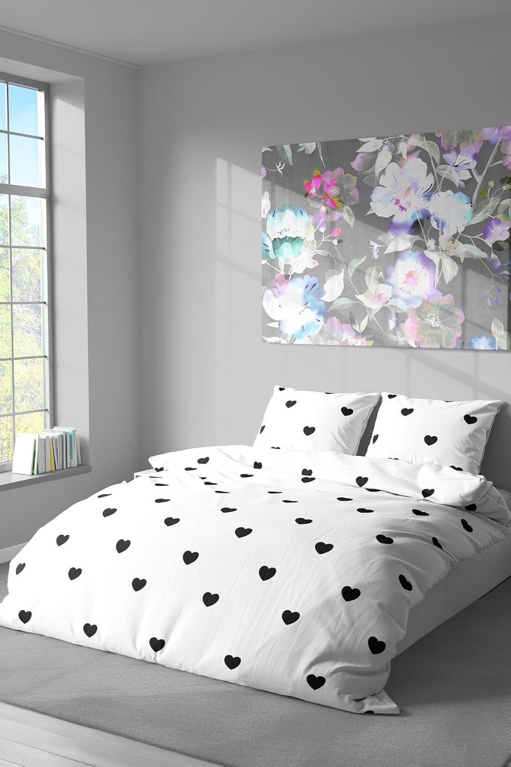 Tekstil Pamuklu Çift Kişilik Nevresim Seti | Nevresim Ve Yastık Kılıfı | ÇARŞAFSIZ Siyah Kalp Desenli Renkli