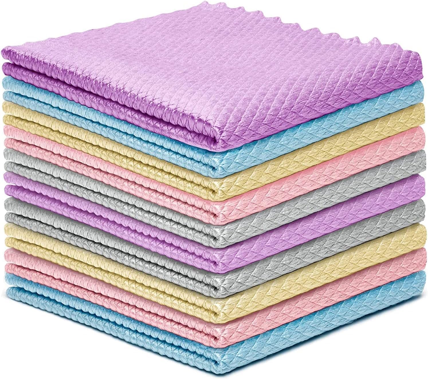 Temizleme Bezi, 10 Adet Mikrofiber Balık Pulu Desenli Temizlik Bezi, Yeniden Kullanılabilir Dalga Desenli Bez Seti, Ayna, Cam ve Ekran Temizliği için (30x30cm, Rastgele Renk)
