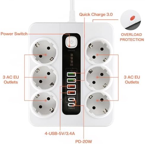 ✅ Boyut: yaklaşık 17.5*14.5*3.9cm ✅Birden fazla cihazı ve cihazı aynı anda şarj edebilen 4 EU AC, 4 USB-A, 2 Type C bağlantı noktasına sahiptir. ✅Geniş kullanım alanı: Pirinç pişiriciler, dizüstü bilgisayarlar, çamaşır makineleri, kahve makineleri, mikrodalga fırınlar, indüksiyonlu ocaklar, cep telefonları, buzdolapları, TV'ler, yönlendiriciler, oyun konsolları vb. ✅3000W(Max) AC100V-250V / 50-60Hz / 10A ✅Güvenlik: Aşırı akıma, Aşırı şarja, Aşırı ısınmaya karşı Çoklu Koruma, aleve dayanıklı ve yüksek sıcaklığa dayanıklı malzemeden yapılmıştır. ✅ Rated power: 3000W (Max) ▶ Rated current: 10A ▶ Output port: 4*EU + 4*USB-A+ 2*USB-C ▶ Rated voltage: 100V-250V ▶ USB output: 4.2A (Auto Max) Not fast charging ▶ Material: PC fireproof material ▶ switch: yes ▶ Overload protection: yes ▶: 2 meters Termal Akım Korumalı 3000W 3.6 Amper 6 lı Priz 2 Metre Uzatma Kablosu Çoklu Priz 4 Usb 2 Type C PD Girişli Hızlı Şarj İstasyonu