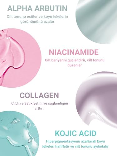 Cildi Beyazlatır: Cildin daha parlak ve canlı görünmesine yardımcı olur. Lekeleri Aydınlatır: Ciltteki koyu lekelerin rengini açarak daha eşit bir cilt tonu sağlar. Nem Verir: Cildin nem dengesini sağlayarak kuruluğu önler ve cildi yumuşatır. Cilt Tonunu Eşitler: Cilt tonu farklılıklarını minimuma indirgeyerek daha homojen bir görünüm kazandırır. Kararma Karşıtıdır: Ciltteki kararmayı önleyerek cildin daha aydınlık kalmasına yardımcı olur. Tüm Cilt Tiplerine Uygundur: Tüm cilt tiplerine uyum sağlar. The Vivia Cilt Beyazlatıcı Aydınlatıcı Leke Karşıtı Krem Arbutin Kojik Asit Niasinamid Kolajen Glutatyon 50 ml
