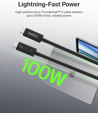 Thunderbolt 4 Kablo (2M 6.6FT), 100W Güç Dağıtımı PD Etkinleştirilmiş USB Tip C Bağlantısı, USB 4 Uyumlu ve Daha Fazlasıyla Uyumlu, Siyah
