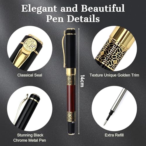 Tükenmez Kalem, 0.5mm Uçlu 2 Adet Siyah Mürekkep Yedekli, Şık Hediye Kutusunda, Krom Detaylı Lüks Tükenmez Kalem Seti, Öğrenci, Yönetici ve Öğretmenler İçin Hediye Kalem