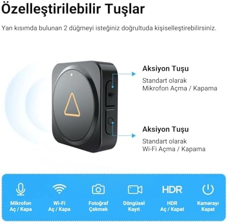 markalı tüm kameralar ile uyumludur. Uyumlu Modeller: A129 serisi, A139 serisi, A229 serisi, A329 serisi, T130, A119 Mini, WM1, VS1 Kolay ve Hızlı Eşleşme Ufak boyutları ile kolayca konumlandırabilirsiniz. Model: BTR200 Tüm Kamera Serileri için BTR200 Kablosuz Bluetooth Uzaktan Kumanda