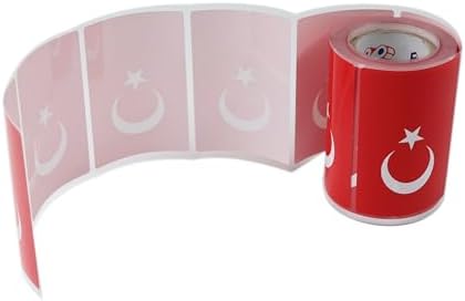 Türk Bayrağı Etiketi Kuşe Rulo Çıkatma, 90mmx 60mm 300 Adet 40mm Çapı, Bayrak Etiket