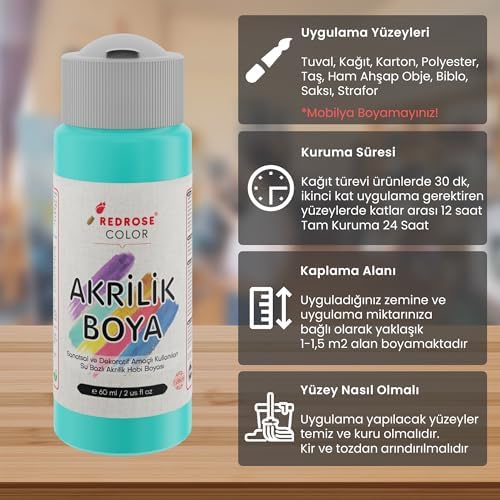 Dayanıklı yapısıyla uzun süre kullanılabilir Turkuaz Akrilik Boya 60 ml Turkuaz Akrilik Boya 60 ml