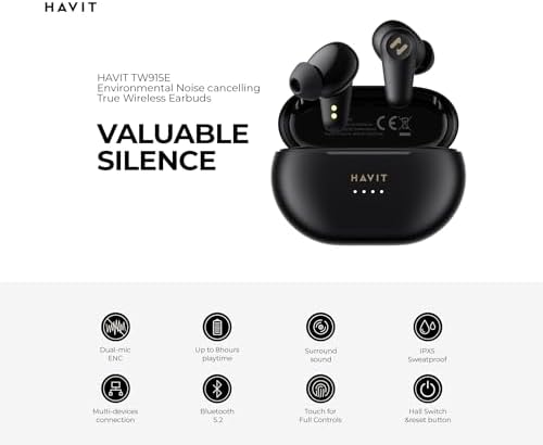 ENC Çift Cihaz Desteği 4 Mikrofon Düşük Gecikme Modu Bluetooth 5.2 Dokunmatik Kontrol TW915E Enc Tws Bluetooth 5.2 Kulaklık – 4 Mikrofonlu, Çift Cihaz Desteği