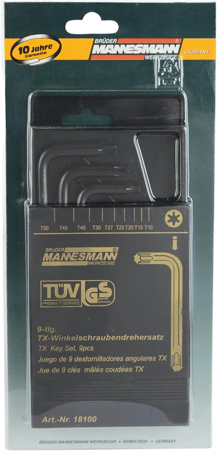 Menşe Ülke: Çin 9 Parça Metrik Altıgen Şaftlı Allen Anahtar Seti Sertleştirilmiş Ve Isıl Işlenmiş Krom Vanadium Çelik Uçlar: T10, T15, T20, T25, T27, T30, T40, T45, T50 Tx Dik Açılı Tornavida Seti, Altıgen, Krom Vanadyum Çeliği, 9 Parça M18100