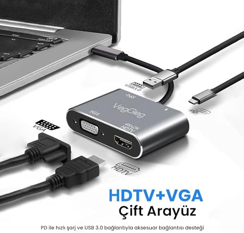 Type-C 4K HDMI 1080P VGA USB 3.0 PD Dönüştürücü Çevirici Hub