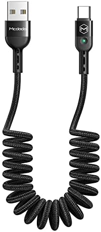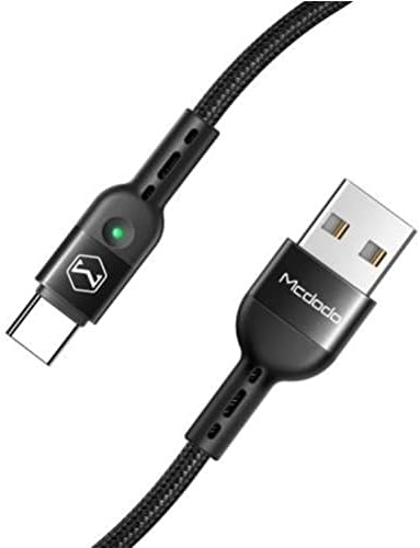 Type-C Şarj Kablosu, LED Işıklı Spiral Örgü Kablo, 1.8M Uzunluk, 2A Hızlı Şarj Özellikli, Siyah