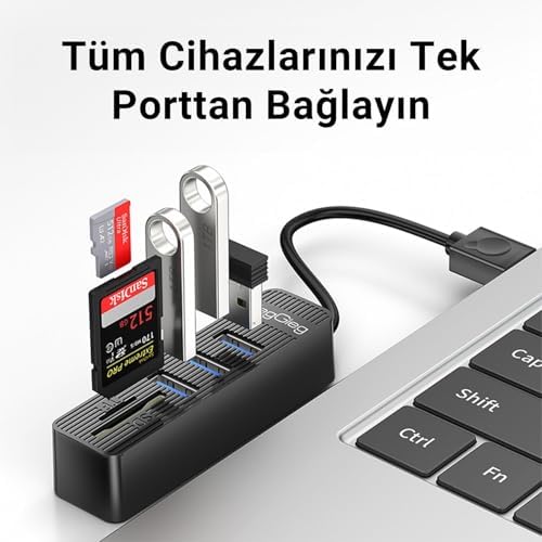 USB 2.0 SD – MicroSD Kart Okuyucu ve 3 Port USB Çoklayıcı Hub