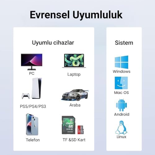 Model: PAPW3AT-U3-015-WH-EP Renk: Beyaz Çıkış: 3 x USB 3.0, TF/SD portu Sistem: Windows, Mac OS, Linux USB 3.0 to 3.0 TF SD Kart Okuyucu 3 Portlu USB 3.0 Çoklayıcı Adaptör Beyaz, masaüstü bilgisayar veya laptoplarınızdaki USB portunu çoğaltarak klavye, mouse ve flash bellek vb. çevre bileşenlerini aynı anda kullanmanızı sağlar. 5Gbps veri aktarımı hızı sayesinde bağladığınız cihazlarda gecikme yaşamazsınız. TF ve SD kart portları sayesinde aksiyon kamerası veya araç kamerasından aldığınız videolarınızı ve fotoğraflarınızı 104Mb/s hızında aktarabilir ya da görüntüleyebilirsiniz. Aynı anda hem TF hem de SD kartınızı kullanabilirsiniz. ABS materyalden tasarlanan kasa ufak çaplı darbelere karşı dayanıklıdır. Kompakt tasarımı sayesinde yanınızda kolayca taşıyabilirsiniz. Tak, çalıştır olarak Windows, Mac OS, Linux sistemleriyle sürücüsüz kullanabilirsiniz. USB 3.0 to 3.0 TF SD Kart Okuyucu 3 Portlu USB 3.0 Çoklayıcı Adaptör Beyaz