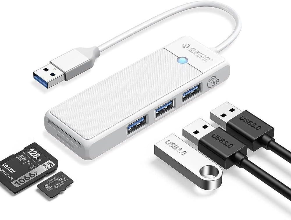 USB 3.0 to 3.0 TF SD Kart Okuyucu 3 Portlu USB 3.0 Çoklayıcı Adaptör Beyaz