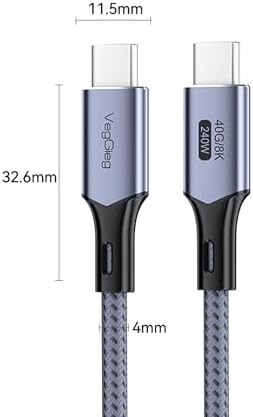 USB 4.0 E-Mark 240W 40Gbps Thunderbolt 4 8K 60Hz Type-C Görüntü Hızlı Şarj ve Data Kablosu 1 Metre