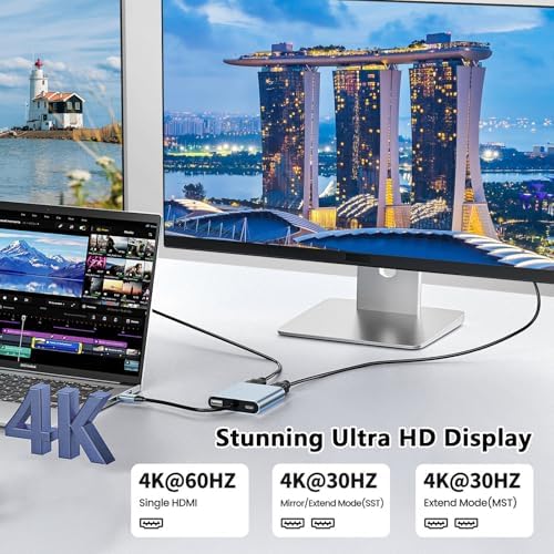 Çift 4K Video Çıkışı: Bu USB-C – HDMI adaptörü, dizüstü bilgisayarınızın ekranını aynı anda 4K@30Hz'e kadar çözünürlüklerle iki monitöre yansıtmanıza veya genişletmenize olanak tanır. Lütfen dikkat: Dizüstü bilgisayarınızın, monitörünüzün ve HDMI kablosunun 4K'yı desteklediğinden emin olun. Aksi takdirde, çıkış çözünürlüğü daha düşük olabilir. Gerçek çözünürlük, cihazınızın ve video kaynağınızın özelliklerine bağlı olacaktır USB C – Çift HDMI Adaptörü – 4K@30Hz Çift Monitör HDMI Adaptörü, 100W PD Şarj, USB3.0 5Gbps ve Thunderbolt 3 Dizüstü Bilgisayar/Tablet için Uyumlu