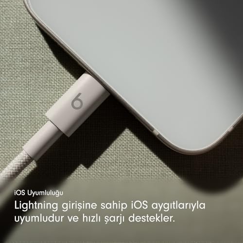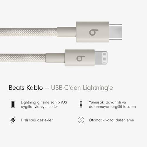 USB-C'den Lightning'e Örgülü Kablo, Hızlı Şarj, Dayanıklı/Dolanmayan, Lightning Girişli Aygıtları İçin Uyumlu Şarj Kablosu (1,5 m) – Granit Beji