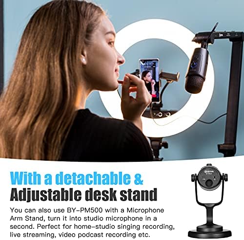 USB kondansatörlü mikrofon, By-PM500 USB stüdyo mikrofonu, Windows, Mac ve PC için, Vokal, YouTube akışı, oyun, konferans çağrısı, ASMR, Podcast video kaydı için çıkarılabilir stant