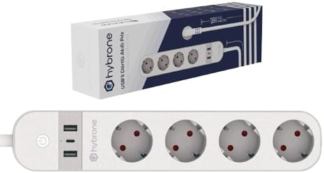 USB ve Type-C Girişli Akım Korumalı Dörtlü Wi-Fi Akıllı Priz, 16 Amper, Enerji İzleme, Uygulama ile Uzaktan Kontrol