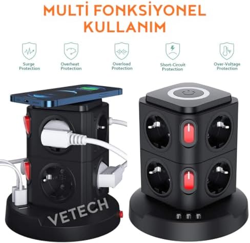 Akıllı Priz USB ve Type-C Girişli Akım Korumalı Dörtlü Wi-Fi Akıllı Priz, 16 Amper, Enerji İzleme, Uygulama ile Uzaktan Kontrol USB ve Type-C Girişli Akım Korumalı Dörtlü Wi-Fi Akıllı Priz, 16 Amper, Enerji İzleme, Uygulama ile Uzaktan Kontrol