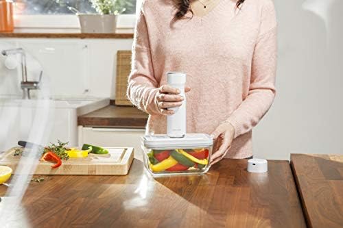 Gıdaların tazeliğini 5 kata kadar daha uzun süre korumak için özel olarak tasarlanmış taşınabilir vakum pompasıdır Fresh & Save saklama kutuları, poşetler ve şarap tıpası ile uyumlu olarak çalışır Tek tuşla otomatik hava çekme özelliği sayesinde hızlı, pratik ve zahmetsiz kullanım sunar Şarj edilebilir bataryası USB kablo ile kolayca şarj edilir; kablosuz kullanım rahatlığı sağlar Kompakt ve hafif tasarımıyla çekmece, çanta veya mutfak raflarında kolayca saklanabilir Modern beyaz rengi ve sade formu mutfak dekorasyonuna şık bir dokunuş katar Vakum teknolojisi sayesinde yiyecek israfını azaltır, planlı ve sağlıklı saklama imkânı sunar Vakum Pompası