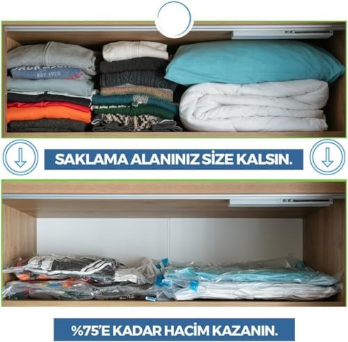 Vakum Teknolojisi: Vakumlu hurçlar, vakum pompası veya vakum makinesi yardımıyla hava emilerek içindeki hava vakumlanır ve içeriğin sıkıştırılmasını sağlar. Bu, kıyafetlerin daha az yer kaplamasını sağlar ve saklama alanını artırır. Mühürlü Kapatma: Vakumlu hurçlar genellikle mühürlü bir kapatma mekanizmasıyla gelir. Bu, vakumun korunmasını sağlar ve içeriğin havayla temasını engeller. Çeşitli Boyutlar: Farklı boyutlarda vakumlu hurçlar mevcuttur, bu da çeşitli eşyaların saklanması için uygun hale gelir. Kolay Taşınabilirlik: Hafif ve katlanabilir tasarımları sayesinde, vakumlu hurçlar kolayca taşınabilir ve istenildiğinde depolama için kullanılabilir. Kullanım Alanları: Kıyafetlerin saklanması, seyahat için eşya paketleme, mevsimsel kıyafetlerin depolanması gibi birçok farklı kullanım alanına sahiptir. Dayanıklılık: Kaliteli vakumlu hurçlar, dayanıklı malzemelerden yapıldığı için uzun ömürlüdür. Vakumlu Hurç,Vakum Poşeti,Hurç,Vakumlu Organizer,Yastık,Yorgan,Kazak İçin Vakumlanabilir Hurç,Yerden Tasarruf İçin Vakumlu Poşet (2, 50X70)