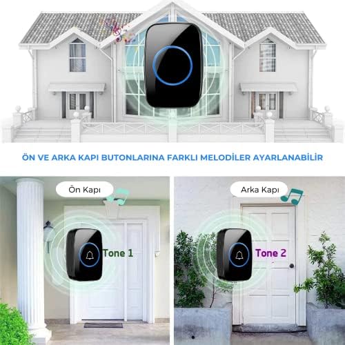 VESTRAGO Kablosuz Kapı Zili 2 Buton 1 Alıcı Led Işıklı 300 Metre Mesafe 60 Melodi Ev Ofis Depo