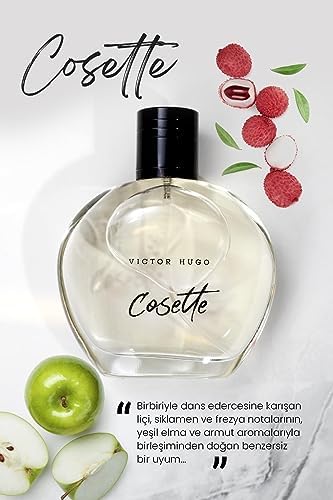 Büyüleyici Kadın Kokusu: Meyvemsi ve çiçeksi notalarıyla unutulmaz bir koku deneyimi sunar. Etkileyici Açılış: Liçi, siklamen ve frezya notalarının, yeşil elma ve armut ile birleşimi. Dayanılmaz Şeker Kokusu: Tende zarafet ve özgüven uyandıran eşsiz bir şeker aroması. Benzersiz ve Kalıcı: 100 ml EDP formülüyle gün boyu süren baş döndürücü bir etki. Hayal ve Gerçek Arasında: Her sıkıldığında kadınlara zarafet ve sofistike bir imza bırakır. Her Anınıza Uyumlu: Günlük kullanımda ve özel anlarda kadınsı cazibenizi artırır. Victor Hugo EDP Women's Perfume Cosette 100 ml
