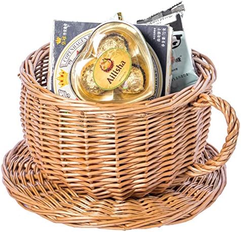 Vintiquewise Hasır Tabağı Kahve Kupası Dekoratif Hediye Sepeti Masa Düzenleyici, Natruel