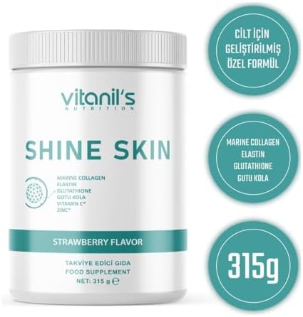 Gluten İçermez Şeker içermez Koruyucu İçermez- SiO2 Free Çilek Aromalı Helal Vitanils Shine Skin Powder – 315Gx1