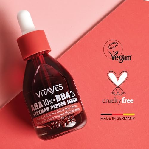 cilt serumu VITAYES AHA%10 BHA%2 Kırmızı Peeling Cilt Serumu – Gözenek Sıkılaştırıcı, Cilt Canlandırıcı, Yenileyici, Ton Eşitleyici, Arındırıcı, Siyah Nokta ve Akne Karşıtı, Anti-Aging, Yaşlanma Karşıtı 30 ml