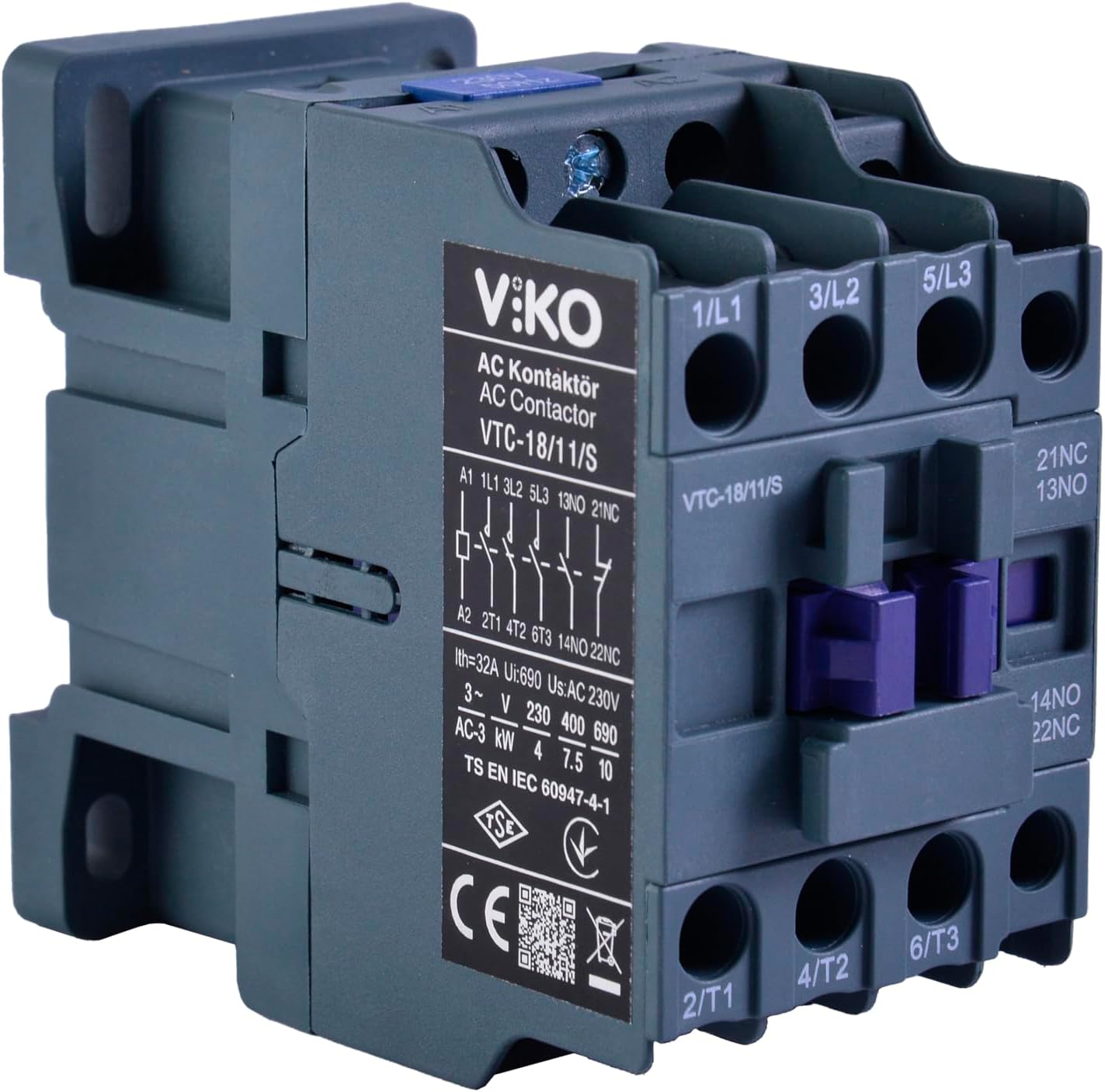 Kontaktör VTC-18/11/S Kontaktör 18A 1no+1nc 230V Bobinli