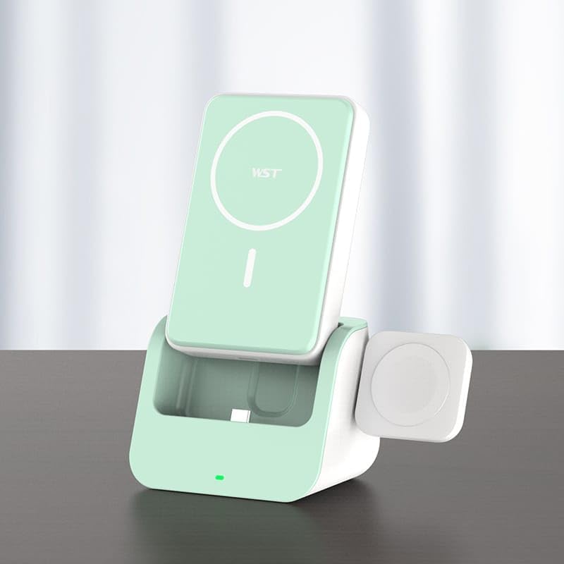 WST KABLOSUZ ŞARJ SETİ 10000MH POWERBANK MAGSAFE ile uyumlu STAND OLABİLİR SAAT VE AİRPODS KULAKLIK ŞARJ EDEBİLİR PORTATİF SÖKÜLÜP TEK TEK KULLANILABİLİR (ZÜMRÜT YEŞİL)