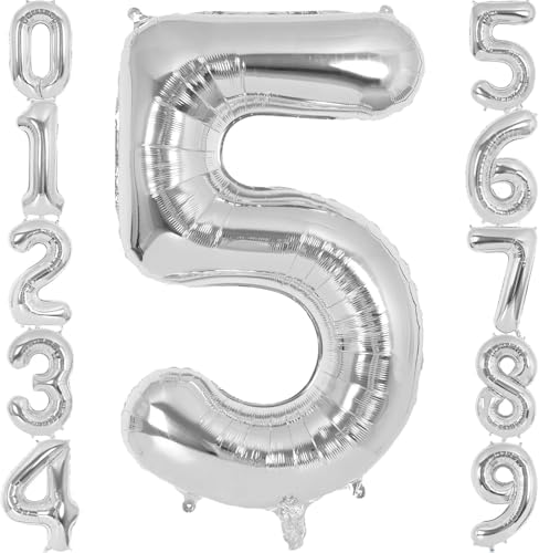 xesha 5 Rakamı Doğum Günü Balonu Yaş Günü Gümüş Renk Uçan Balon 102 cm Doğum Günü ve Parti Dekorasyonu Büyük Boy Folyo Helyum Uçan Balon Yaş 5 Sayısı