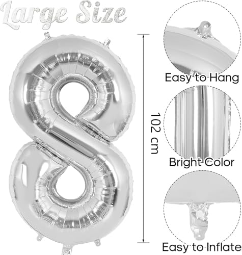 xesha 8 Rakamı Doğum Günü Balonu Yaş Günü Gümüş Renk Uçan Balon 102 cm Doğum Günü ve Parti Dekorasyonu Büyük Boy Folyo Helyum Uçan Balon Yaş 8 Sayısı