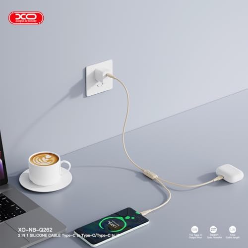 XO is Beauty 100W 2'li Hızlı Şarj Kablosu Type-C- 27W Lightning | NB-Q262 | 1.2 Metre | Veri Transferi | Silikon Tasarım, Kırılmaya karşı Dayanıklı Kablo, Krem
