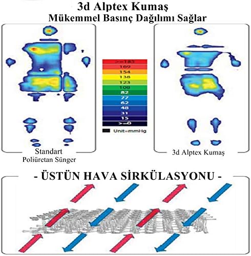 Yüksek hava ve Sıvı geçirgenliği ile termal konfor sağlar Mükemmel Basınç dağılımı ile baskı noktalarını azaltır Daha az terletme, daha serin ve kuru his verir Uyku konforunu üst düzeye taşır Yumuşak dokunuşu ile ekstra konfor verir Y-74B Alptex 3 Boyutlu Kumaş Teknolojisiyle Üretilmiş Terletmeyen Bambulu Yatak Pedi, Beyaz, 90X190 Cm