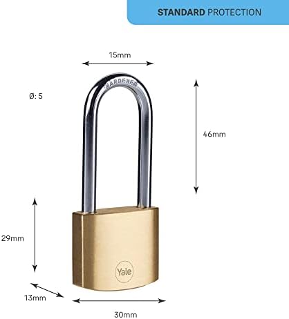 Y110B/30/147/1 – 30mm Pirinç Asma Kilit (Uzun Halka) – Yüksek Koruma – Sertleştirilmiş Çelik Halka – Çift Kilitleme – 3 anahtar, Sarı