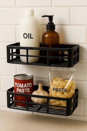 Yapışkanlı Duş Rafı – 2 Adet Paslanmaz Banyo Şampuanlık Organizer | Delmeden Montaj | Geniş Kapasiteli Duş Organizeri | Siyah Plastik Raf – Banyo Mutfak Uyumlu