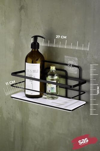 Yapışkanlı Ömür Boyu Paslanmaz Ayarlanabilir Raf Banyo Düzenleyici Şampuanlık Beyaz Siyah Lş-01 Sb