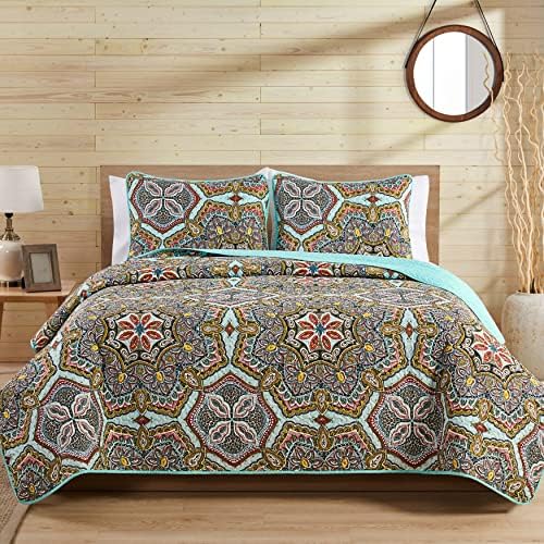 5 Parça Kral Yorgan Seti İçeriği: (1) Yorgan (264 cm x 228 cm), (2) Yastık (50,8 cm x 91,4 cm), (2) Dekoratif Yastıklar (30,48 cm x 40,64 cm, 40,64 cm x 40,64 cm) BOHO CİHAZLI TERS YORGAN: Bir arada iki canlı görünüm – bohem stiline yeni bir bakış için çok renkli kaleydoskop baskıları ve küçük açık mavi madalyonlar arasında geçiş yapın. YUMUŞAK MİKROFİBER: Rahat bir his ve kalıcı konfor için ultra yumuşak polyester mikrofiberden üretilmiştir. HAFİF YIL BOYUNCA KONFOR: Aşırı ısınmadan nefes alabilir ve rahat – sıcak uyuyanlar veya mevsimler boyunca katmanlama için idealdir. SOLMA, KIRIŞIKLIK VE HAPA DAYANIKLI: Dayanıklı mikrofiber kumaş renkleri canlı tutar, kırışıklıklara ve tüylenmeye karşı dayanıklıdır ve yıkandıktan sonra taze bir görünüm sağlar. BAKIM TALİMATLARI: Yorgan ve yastık kılıfı kolay bakım için makinede yıkanabilir. Makinede soğuk, hassas programda ayrı yıkayın. Düşük sıcaklıkta kurutun. Çamaşır suyu kullanmayın veya ütülemeyin. Dekoratif yastıklar: sadece nokta temizliği. MEMNUNİYET GARANTİSİ: Ürünlerimizi bizim kadar seveceğinize ve Amazon üzerinden kolay iade sunacağınıza inanıyoruz. | Yara Koleksiyonu | Yorgan Seti – Ultra Yumuşak Ters Çevrilebilir Örtü Yatak – Hafif, Havalı ve Nefes Alabilir Yatak Örtüsü,, Aqua, 3 Parça