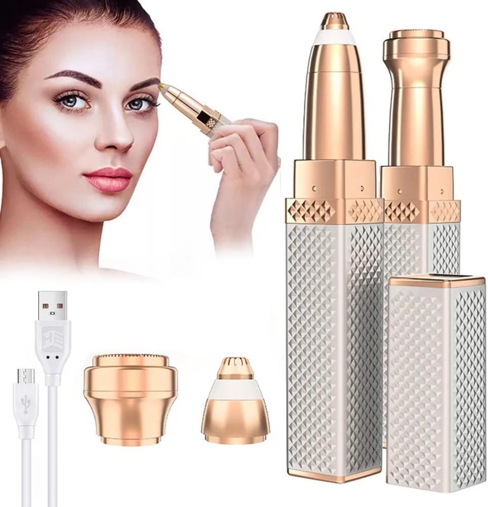 Yeni Nesil Luxury 2 Başlıklı Şarjlı Işıklı Kaş Bıyık Yüz Çevresi Kadın Tüy Epilasyon ve Traş Makinesi