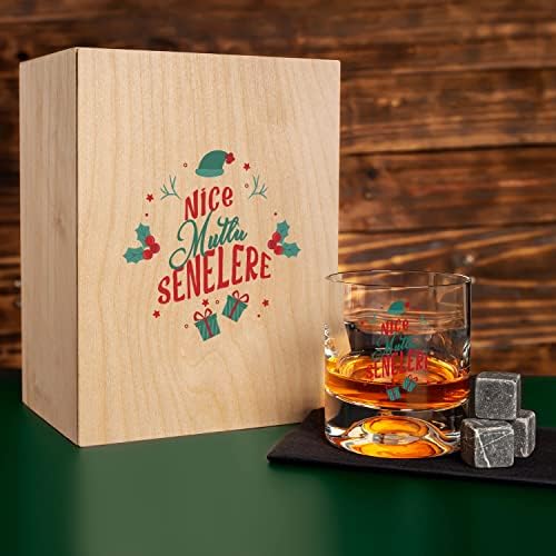 Yeni Yıl Mesajlı Ahşap Kutulu Viski Kadeh Seti