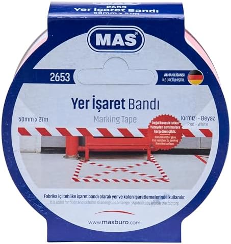 Fabrika, depo, otopark ve benzeri alanlarda yaya yolları, tehlikeli bölgeler ve sosyal mesafe işaretlemeleri için uygundur Yer İşaret Bandı, Kırmızı & Beyaz Yer İşaret Bandı, Kırmızı & Beyaz