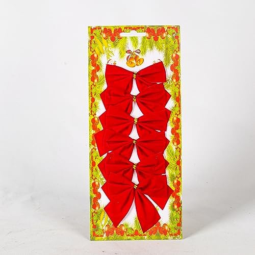 Fiyonklar ve Kurdeleler Yılbaşı Süsü Askılı Fiyonk 6'lı Paket Kırmızı 9×6 Cm.