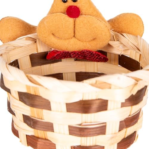 Yılbaşı Süsü Sepet Geyik Figürlü Kahverengi-Kırmızı 10×11 Cm.