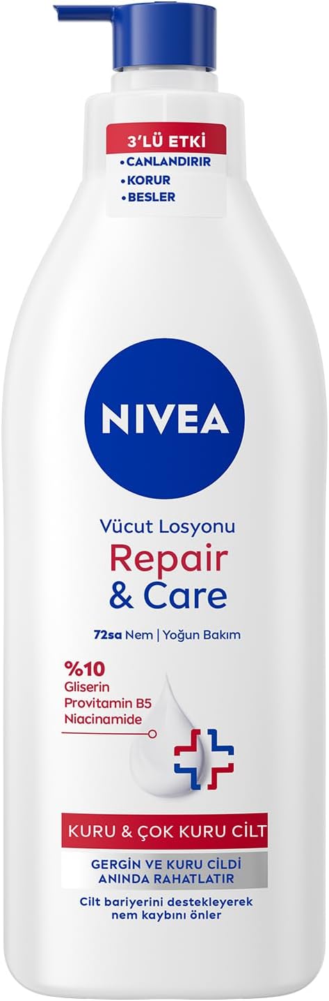 Yoğun Nemlendirici Repair & Care Vücut Losyonu 400ml, 72 Saat Nemlendirime, Kaşıntılı ve Hassas Ciltlere Özel, Onarıcı, Gliserin,Pro Vitamin B5,Niasinamid,Kuru Ciltler